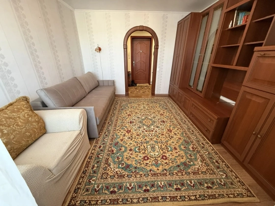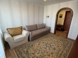 Из мебели в квартире имеется шкаф купе в коридоре, мебельная стенка в комнате, диван раскладной на два спальных места, кухонный гарнитур с мебельным уголком и столом.Гладильная доска., сушилка для белья.